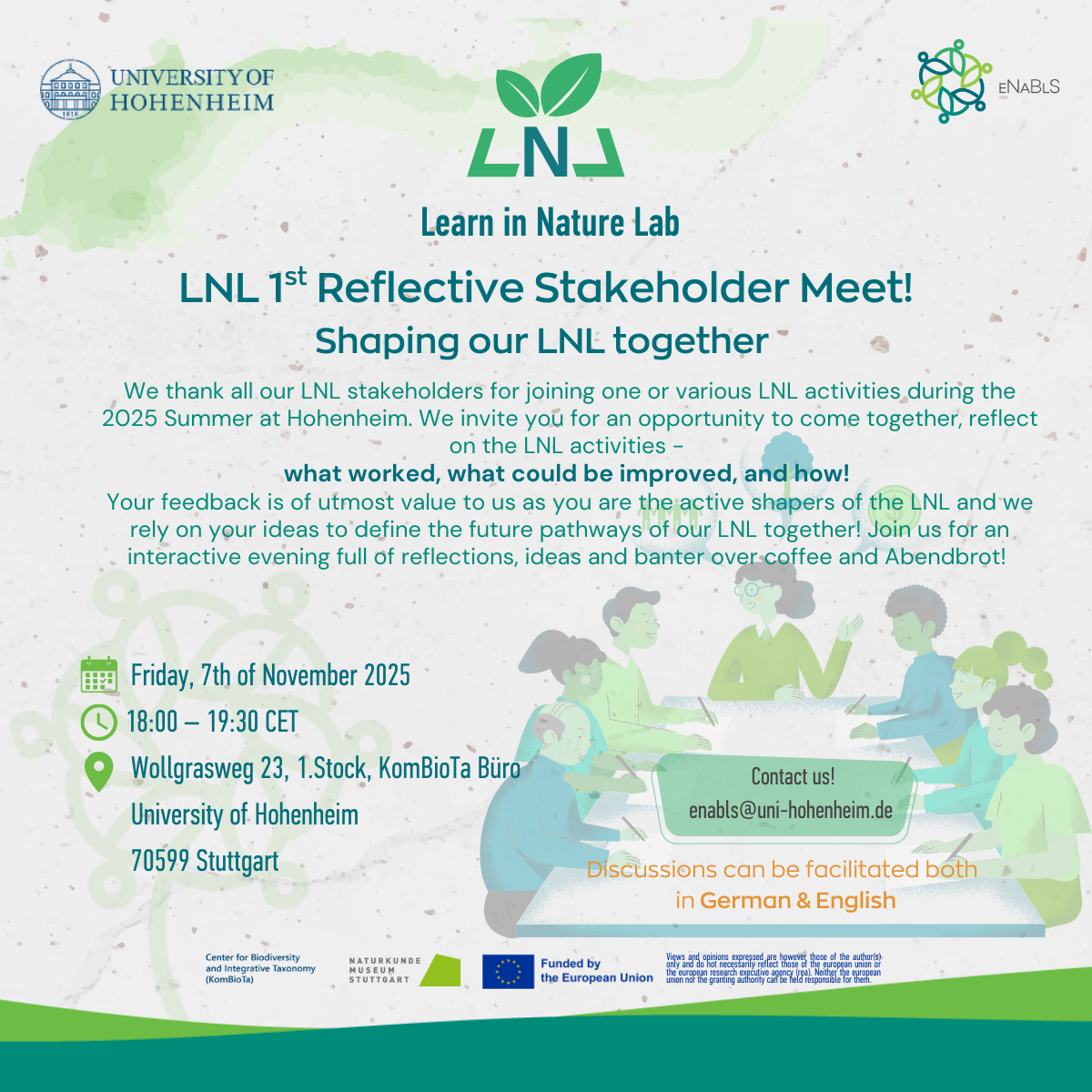Fr, 07. November 2025, 18:00 Uhr | Learn-in-Nature Living Lab (LNL) Reflexions-Stakeholder-Treffen